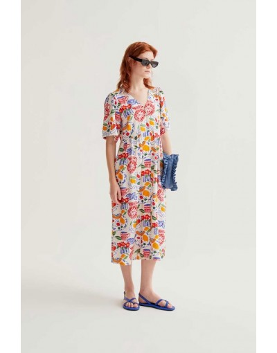 Los estampados son diseños propios, llenos de emoción y atractivo. Vestidos divertidos y originales que puedes complementar con los bolsos de la marca.