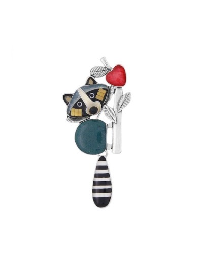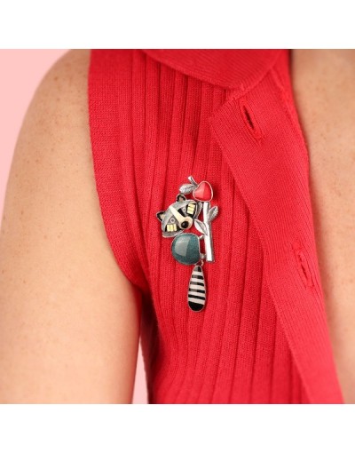 Broche Mapache Raton Lover Couleur Argent Bleu Taratata