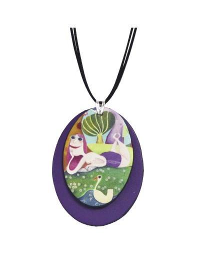 Pendiente geométrico combinando pieles lisas y estampadas con ilustración de autor Gancho largo que le aporta caída y movimiento