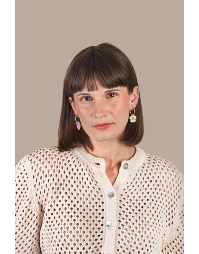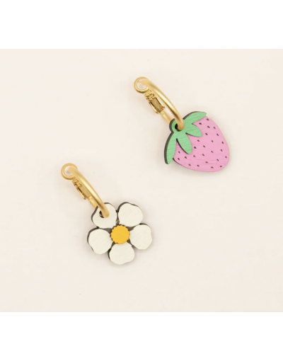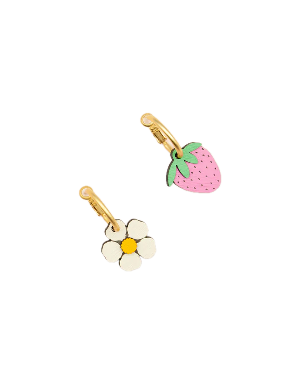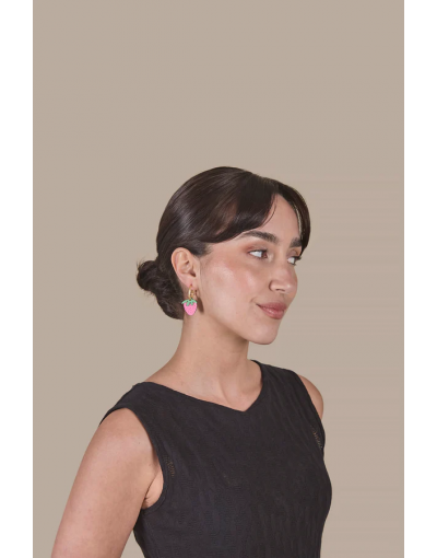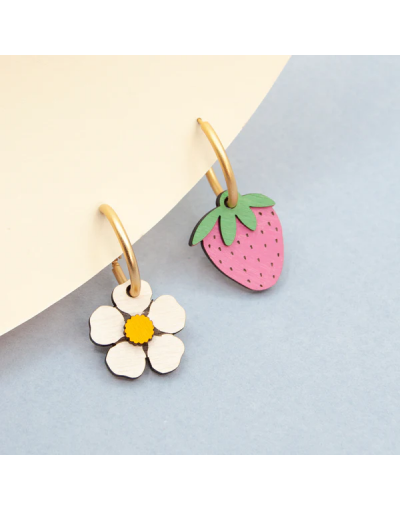 Pendientes Asimétricos Strawberry Field Artesanales Madera