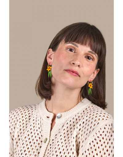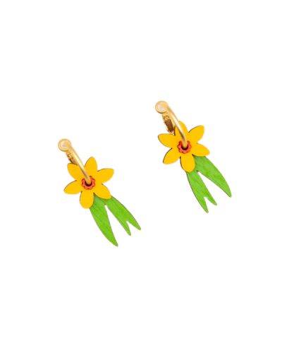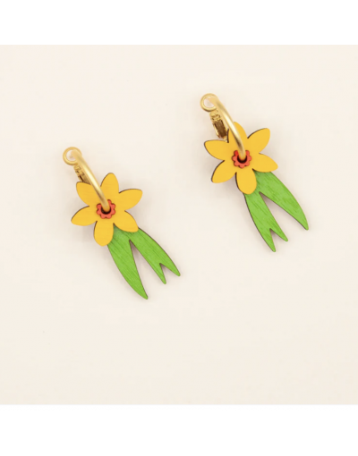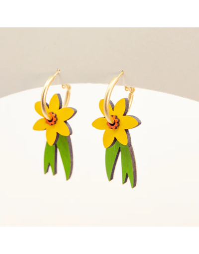 Pendientes Narciso Amarillo Daffodil Stem Artesanales Madera