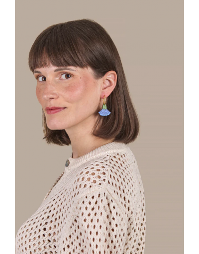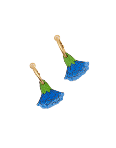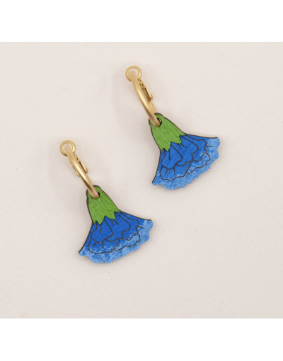 Pendientes Calendula Azul Dancing Blue Marigold Artesanales Madera