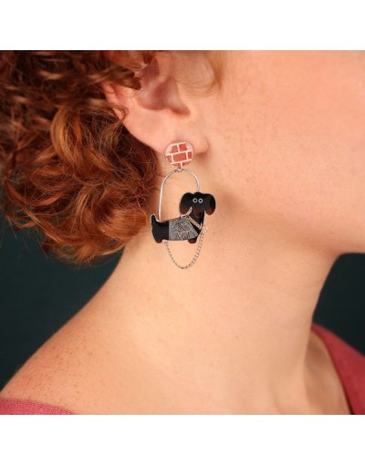 Pendiente ovalado con piel estampada Gancho en plata de ley Ilustración: Leandro Lamas