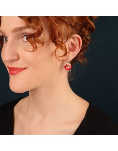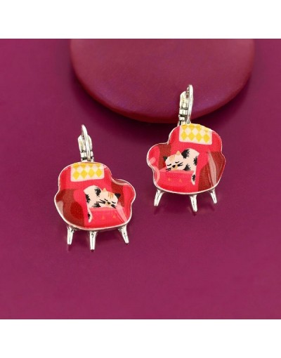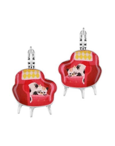 Pendientes Gato Sofa Rojo Chanape Couleur Argent Rouge Taratata