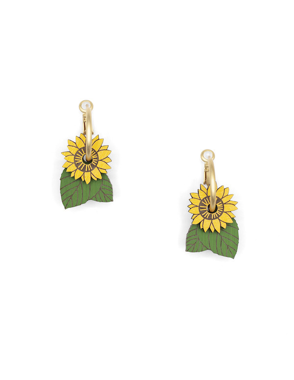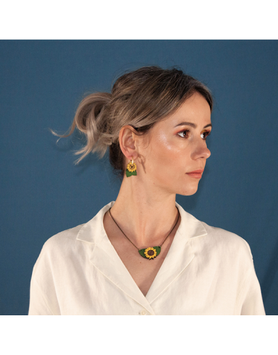 Amarillos y verdes, girando en movimientos rotatorios eternos para buscar a su pareja de baile, el Sol. Nuestros girasoles también balancean con cada uno de tus pasos gracias a su aro dorado, lúcelos cada día y brilla con luz propia.