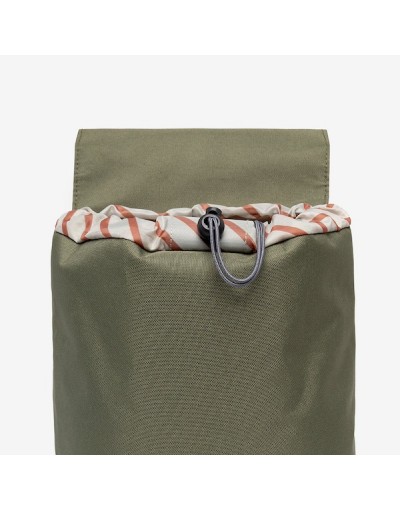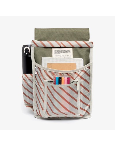 El tejido de la mochila es ecológico, impermeable y de alto rendimiento. Está hecho con botellas de plástico recicladas.