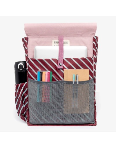 El tejido de la mochila es ecológico, repelente al agua y está hecho con botellas de plástico recicladas.