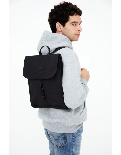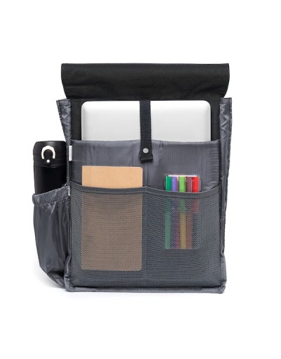 El tejido de la mochila es ecológico, repelente al agua y está hecho con botellas de plástico recicladas.