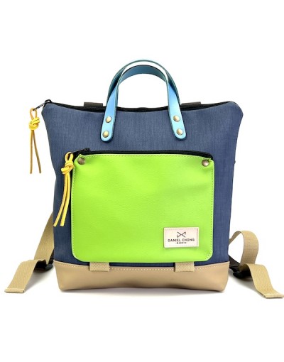 Mochila Book Holder Mini Cuadrada Impermeable Bolsillo Verde Fluor DZ Daniel Chong
