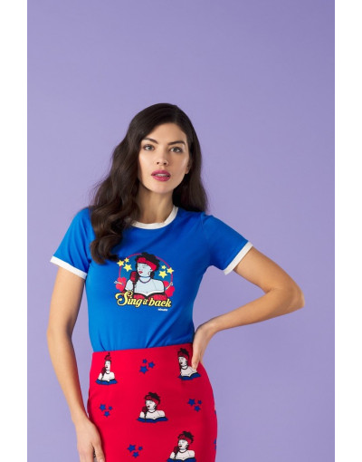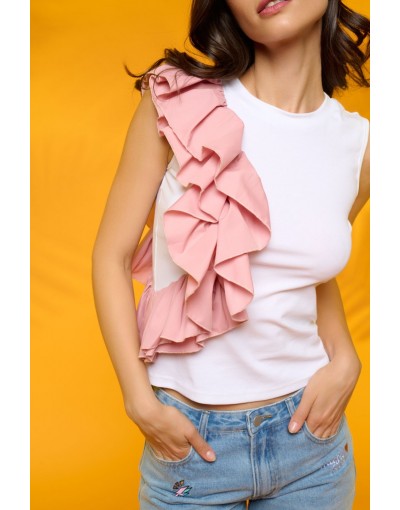 Blusa con manga francesa acabada en doble volante.Bajo acabado en volante.