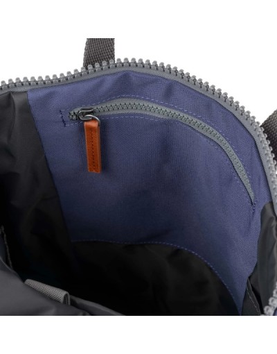 Mochila unisex. Además de su forma plana, cuenta con un bolsillo exterior de piel vegana anti rozadura