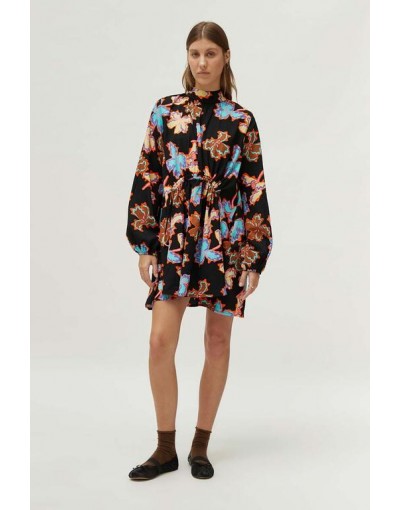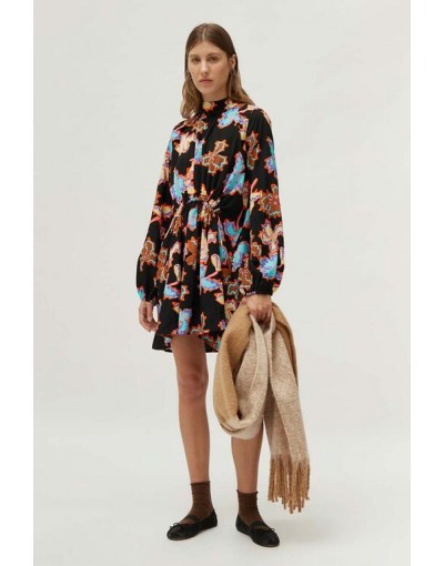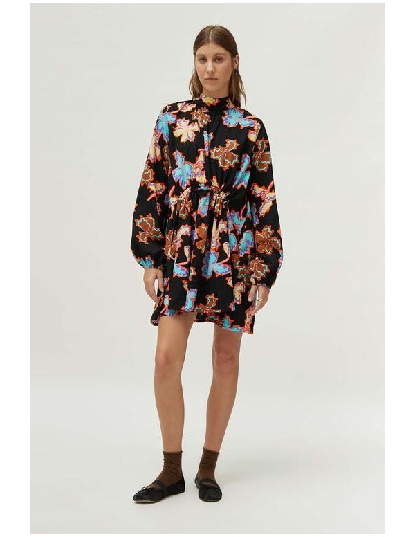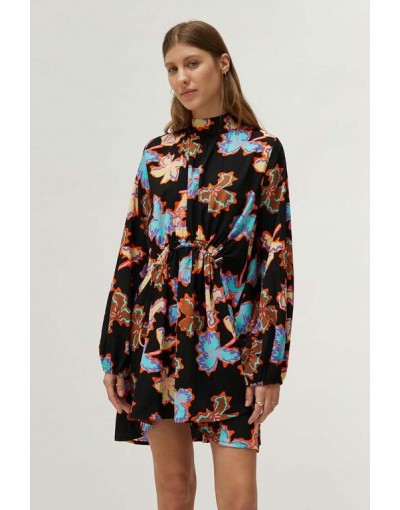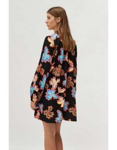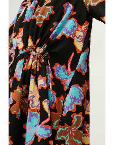 Este vestido es todo lo que necesitas para destacar con elegancia y un toque moderno. Con su crepé texturizado en negro y un estampado de flores vibrantes en azul, amarillo y marrón, es ideal para esas ocasiones en las que quieres lucir chic sin esfuerzo. El cuello mock y las mangas largas añaden un toque sofisticado, mientras que el fruncido ajustable en el frente permite personalizar el fit a tu estilo. ¡Perfecto para esos días en los que quieres brillar con un toque floral!
