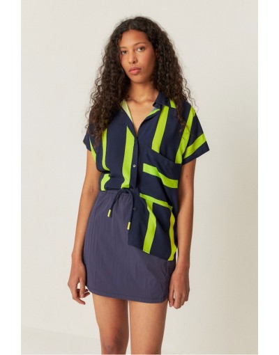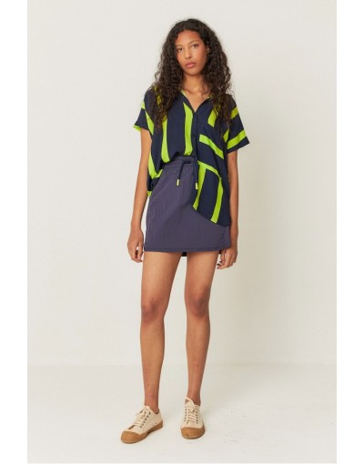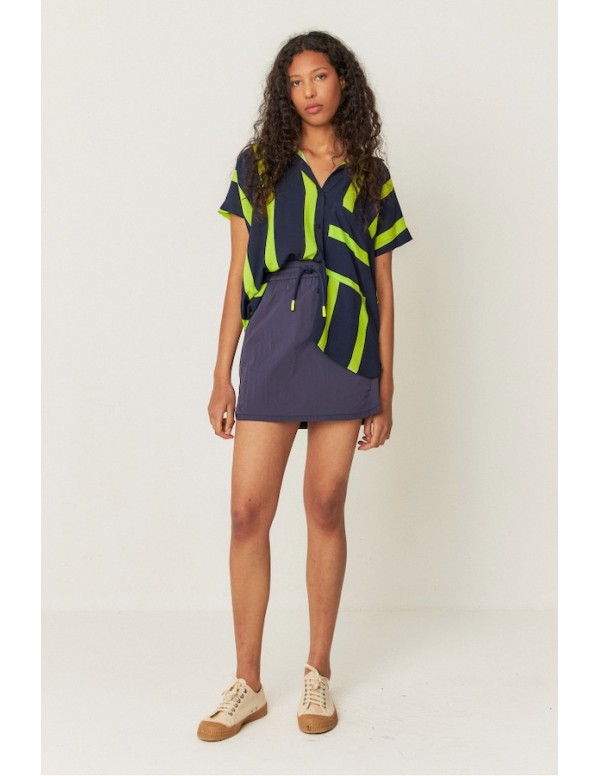 Falda midi evasé de pana bicolor en tonos beige y teja.