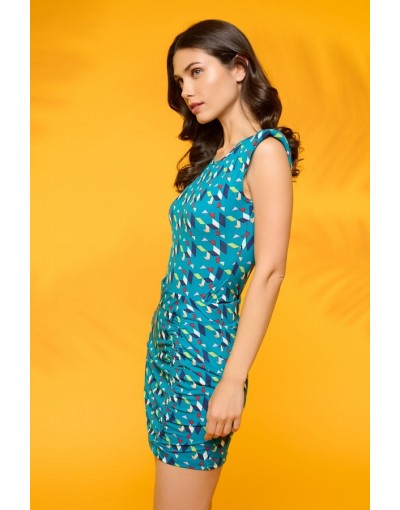 Vestido mini con fruncido delantero con estampado original de brazos. Mangas largas y escote en V. Cierre en la espalda con cremallera ....