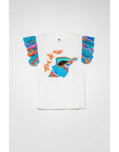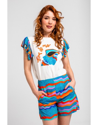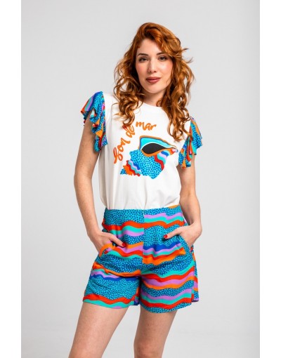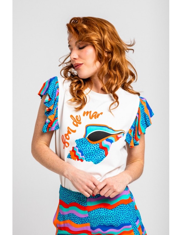 Camiseta sin mangas con un corte recto que no falla. Los volantes estampados en los laterales le dan ese toque especial que te hace sonreír frente al espejo. Una mezcla ligera de algodón elástico y poliéster para días donde la comodidad manda sin sacrificar estilo.
