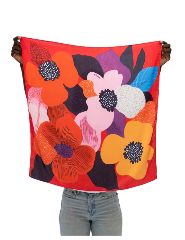 Pañuelo FLORES ROJAS Cuadrado Estampado Viva