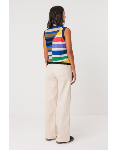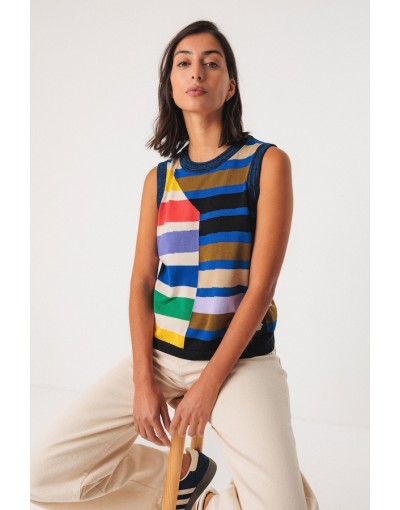 Top de punto jacquard sin mangas con un estampado diseñado en colaboración con el artista Grems. Cuello redondo y corte ceñido.