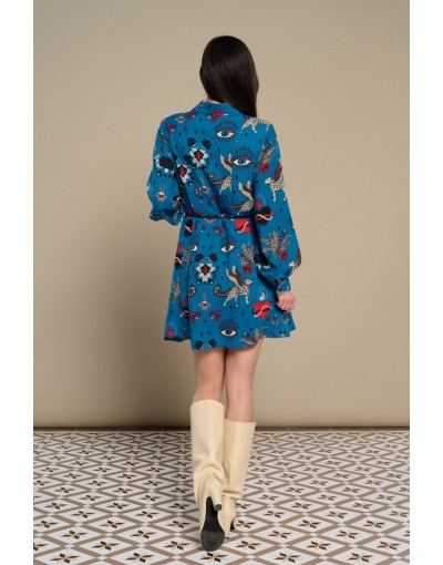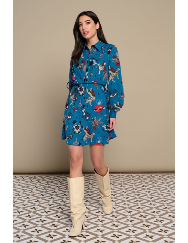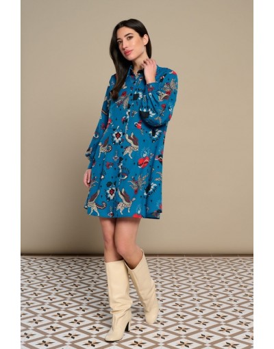 Vestido Camisero Azul Estampado Cinnia Minueto