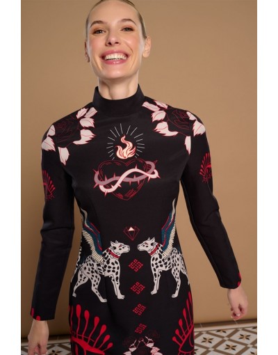 Vestido Ajustado Negro Estampado Mytho Minueto
