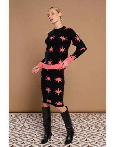 Falda Tubo Negro Punto Estrellas Coral Minueto