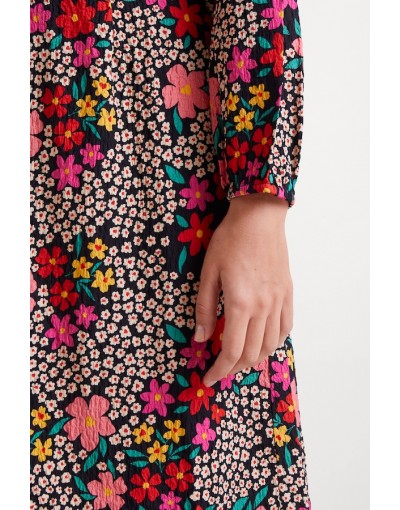 Vestido midi con tejido estampado Giardino. Cuello con escote pico con detalles frontales en botones y manga larga terminada en puño con goma elástica. Forro interior. La modelo mide 177 cm y lleva la talla S.