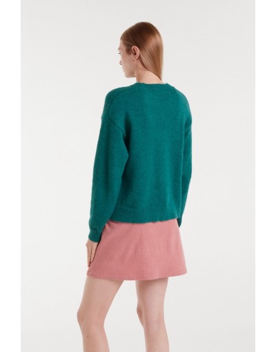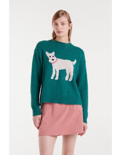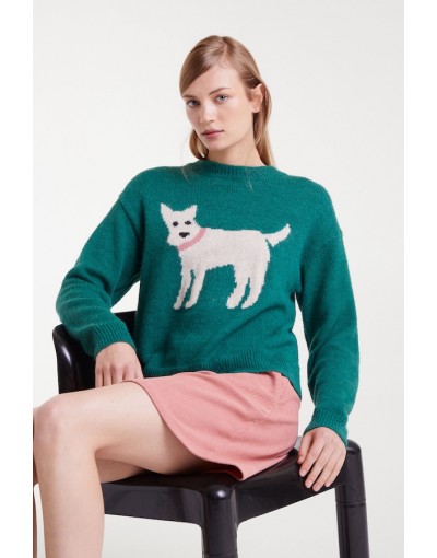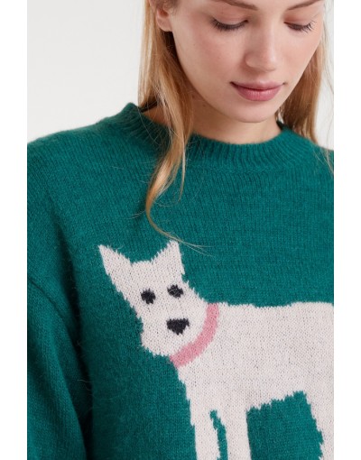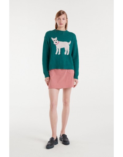 Vestido corto de punto jacquard con estampado SweetHeart. Cuello redondo y manga larga con hombro con ligeramente caído. Detalles con acabados en...