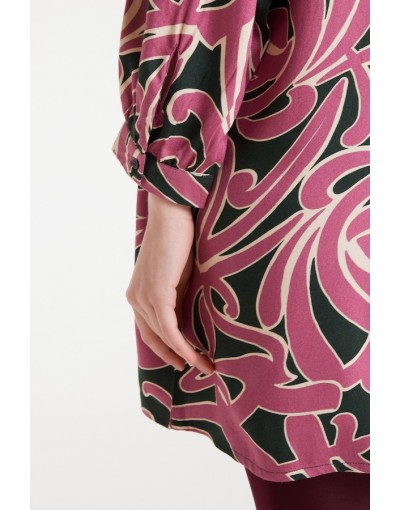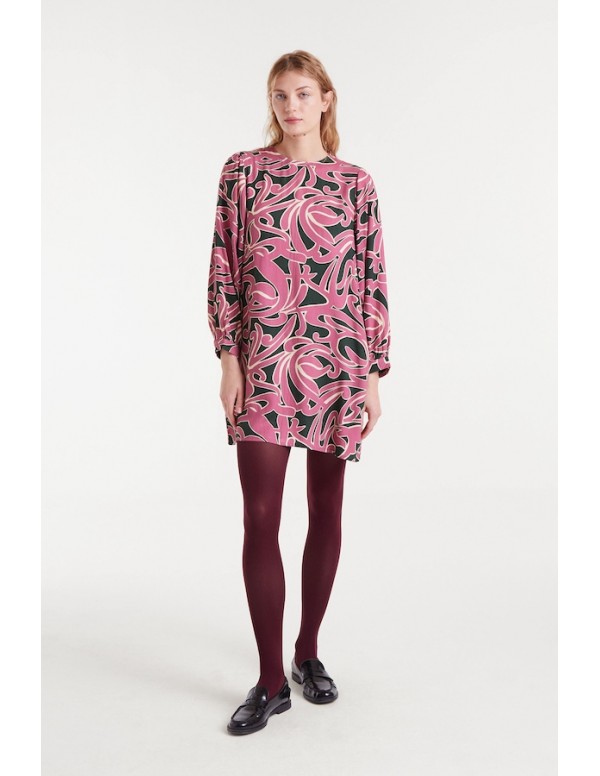 Vestido corto con estampado Pastures. Cuello redondo y manga larga terminada en puño con botón. Cierre posterior con botón. La modelo mide 179 cm y lleva la talla S.