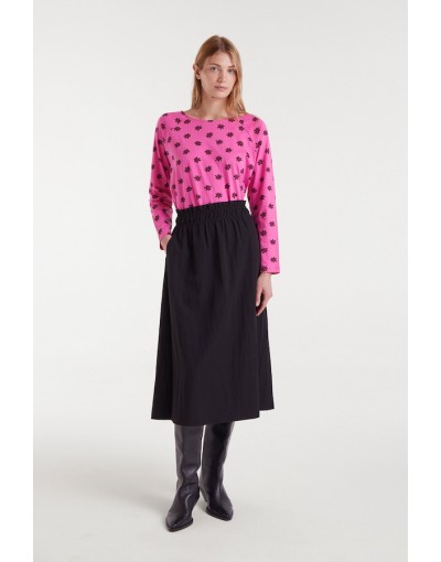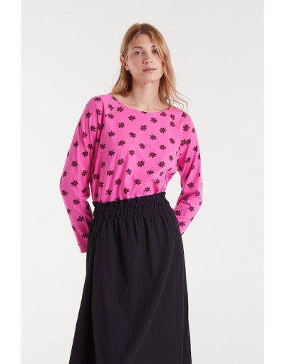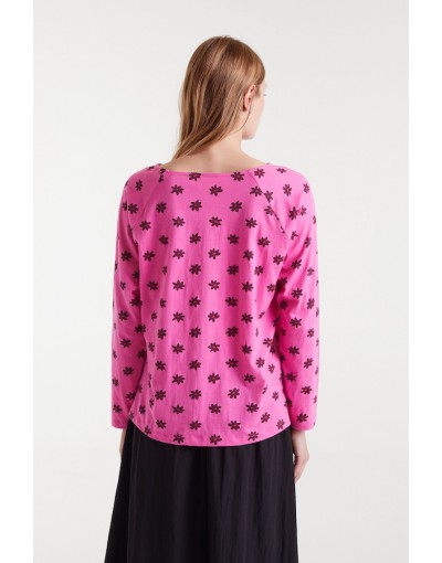 Camiseta con tejido 100% algodón con estampado Daisy. Cuello barco y manga larga. La modelo mide 179 cm y lleva la talla S.