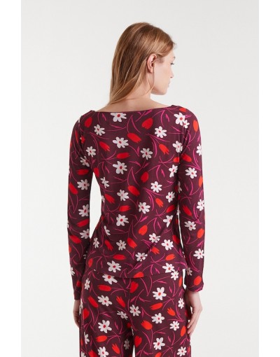 Camiseta Granate Estampado Flores Compañía Fantástica
