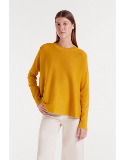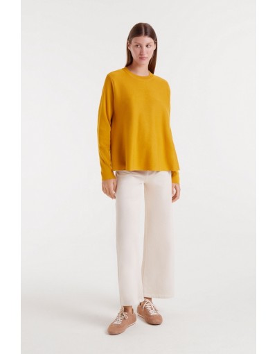 Jersey de punto con corte envasé. Con cuello redondo y manga larga.