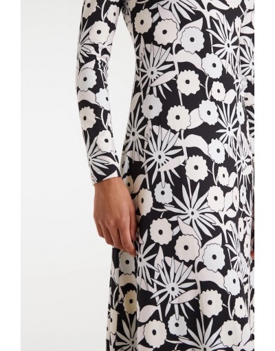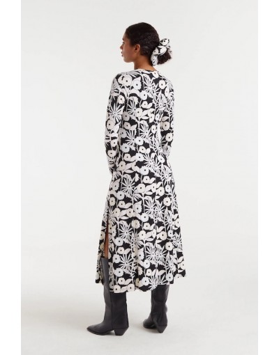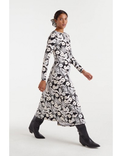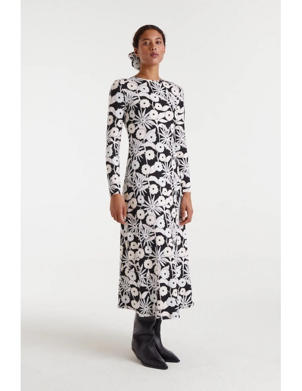 Vestido Largo Elástico Negro Flores Blancas Compañía Fantástica