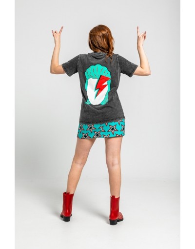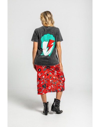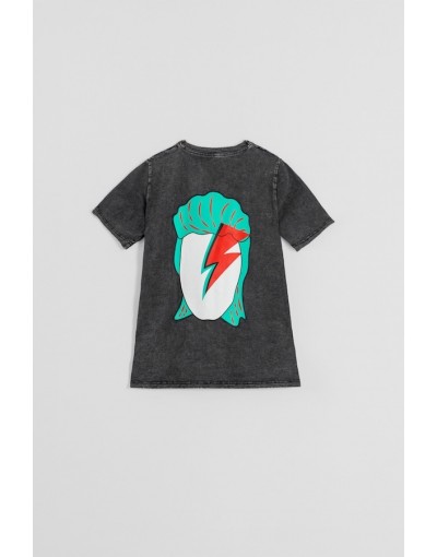 Camiseta Unisex De Algodón Efecto Desgastado Ácido Con Estampado Bowie We Can Be HeroesLolina