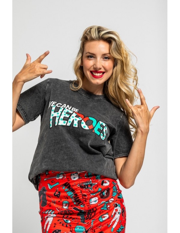We can be Heroes: juntas lo somos. - Camiseta Unisex de algodón efecto desgastado: Camiseta UNISEX de corte recto, cuello redondo y manga corta con sisa. - 100% Algodón.