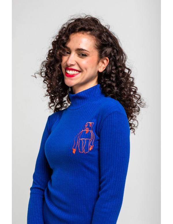 We are connected: porque todos ellos, juntos se recargan las baterías. Este robotito es obra de uno de los maravillosos niños del centro de acogida de Granada al que irán destinados parte de los beneficios de esta colección. - Camiseta Cuello Canalé: Top de tejido elástico en color liso de cuello alto y mangas largas. - 41% Rayón, 34% Poliéster, 17% Nailon y 8% Elastán. -