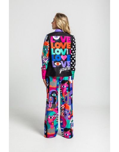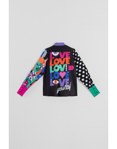 ImPERFECTA: así somos, todas únicas y maravillosas. - Camisa Combinada: Camisa de tela fluida con cuerpo y diseño de patchwork con diferentes combinaciones de tejidos de color, corte acampanado y bolsillo en el pecho. Detalle de ilustración posicional en espalda. - 97% Poliéster y 3% Elastán.