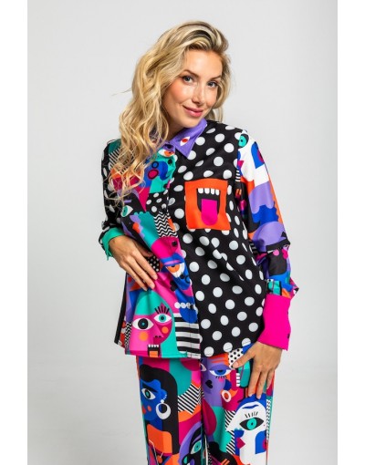 Camisa Combinada De Estampado Geométrico Caras Picasso - ImPERFECTA Lolina