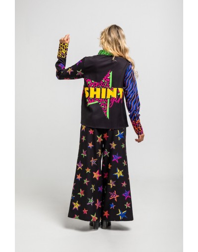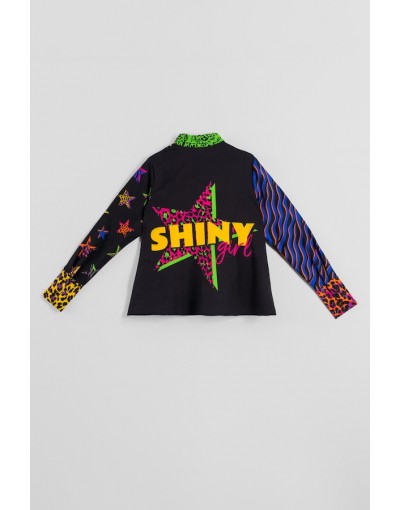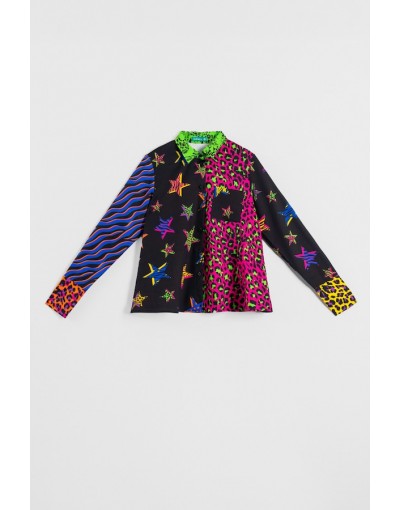 Shiny Girl: y brillando con luz propia. - Camisa Combinada: Camisa de tela fluida con cuerpo y diseño de patchwork con diferentes combinaciones de tejidos de color, corte acampanado y bolsillo en el pecho. Detalle de ilustración posicional en espalda. - 100% Poliéster.