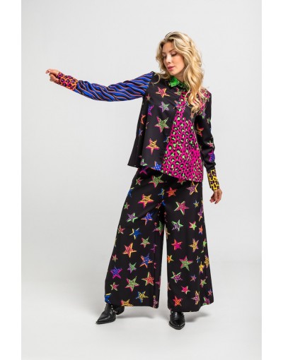 Camisa Combinada De Estampado De Estrellas Con Animal Print - Shiny Girl Lolina