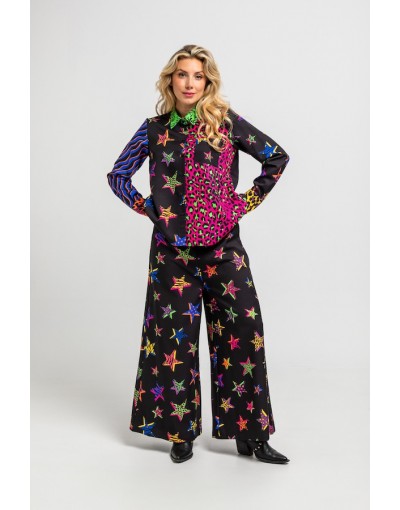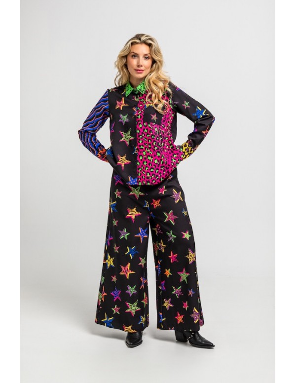 Starwoman: siempre brillando. - Camisa Combinada: Camisa de tela fluida con cuerpo y diseño de patchwork con diferentes combinaciones de tejidos...