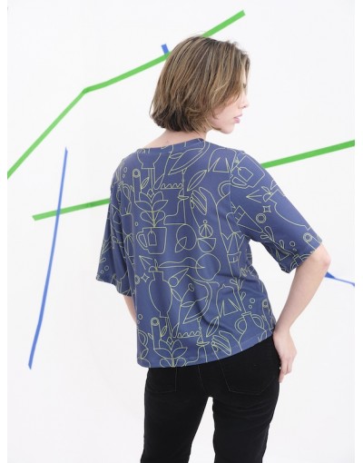 Esta camisa de manga corta destaca por su diseño gráfico y contemporáneo, protagonizado por un estampado creado por la artista Judit Canela. La superficie se recorre con líneas fluidas que dibujan figuras estilizadas, rostros, animales y elementos vegetales, generando una narrativa visual rica y expresiva.Su corte cómodo y estructurado la convierte en una prenda versátil, ideal para llevar como pieza protagonista o integrada en estilismos más sobrios. Una propuesta pensada para quienes visten con sensibilidad artística y gusto por lo singular.