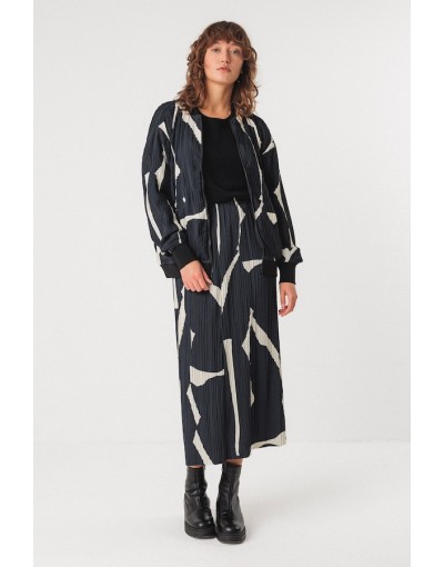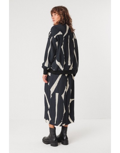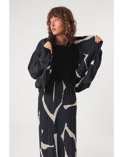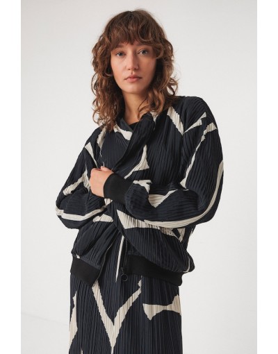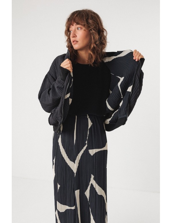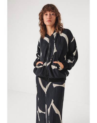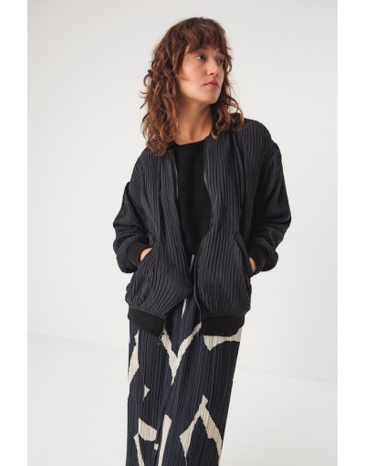 Cazadora bomber oversize de efecto plisado. Este modelo es reversible y tiene los hombros caídos y el cierre delantero de cremallera.Es una prenda oversize.