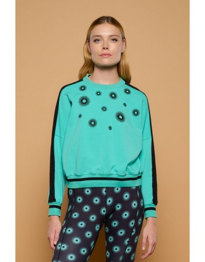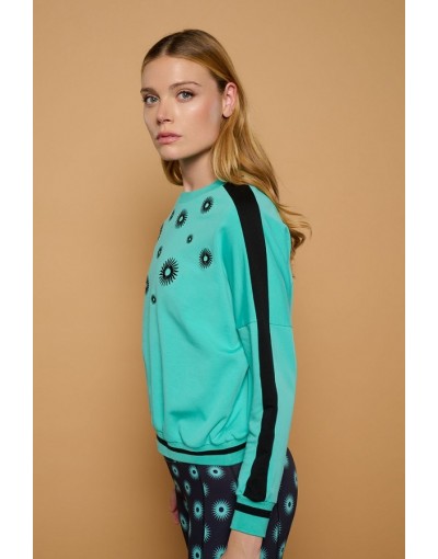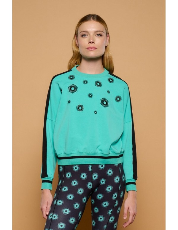 Sudadera Turquesa con Soles Bordados Black Sun Minueto