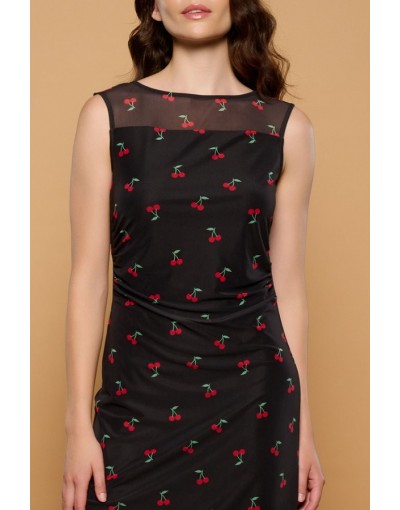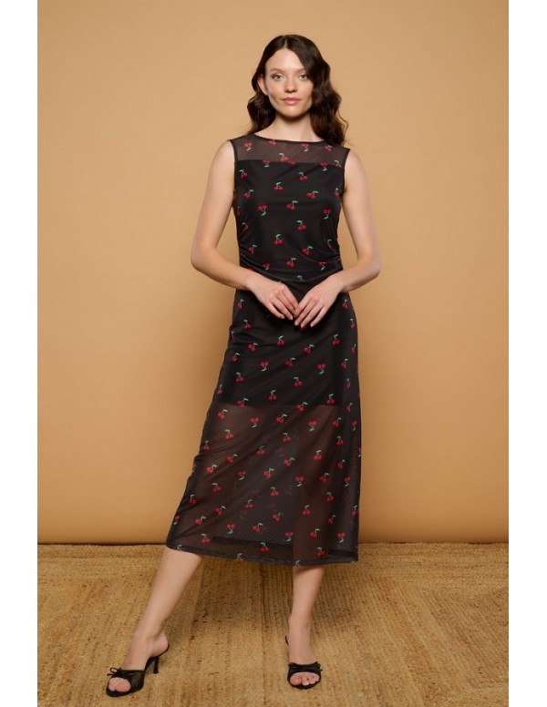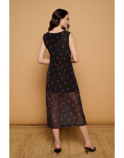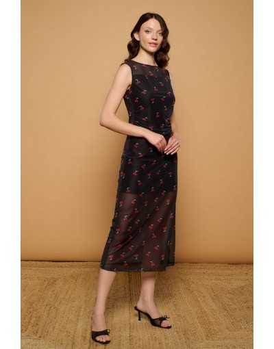 Vestido Midi de Tul con Forro y Estampado Cerezas Cherry Minueto