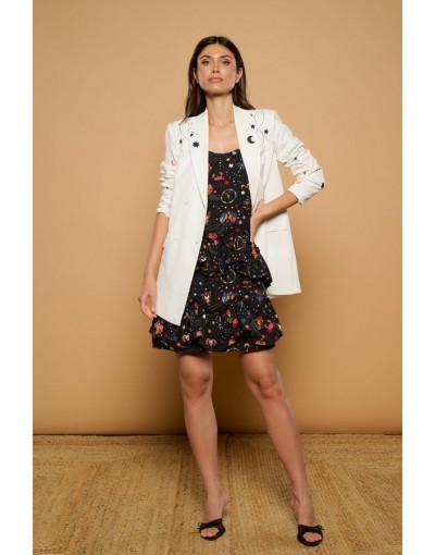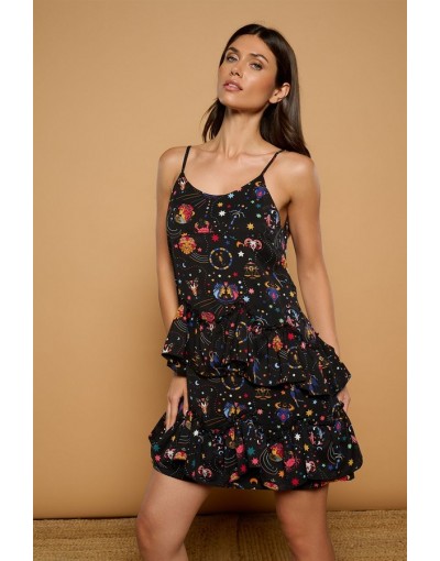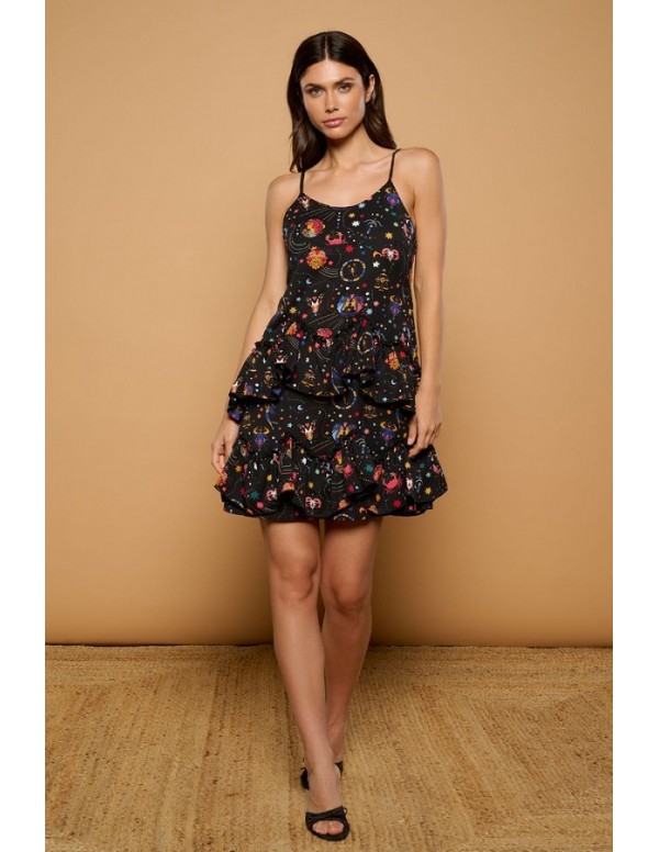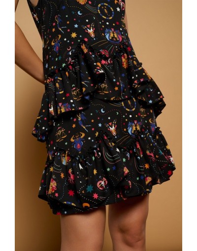 Vestido Corto Tirante Fino y Volantes con Estampado Místico Eulalia Minueto