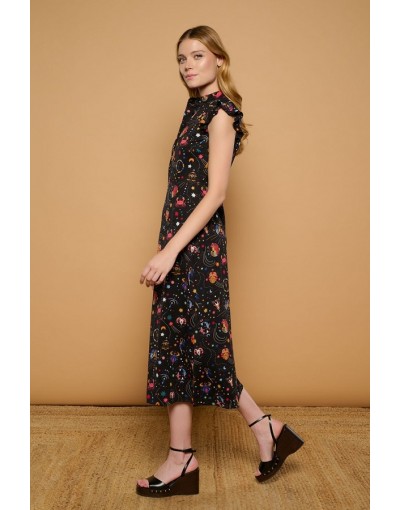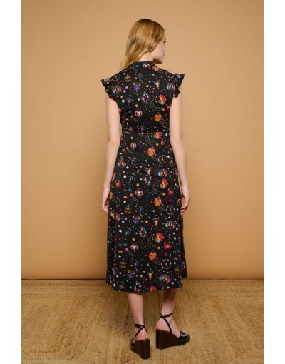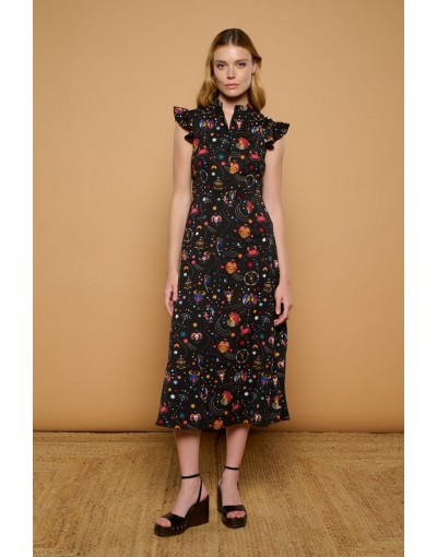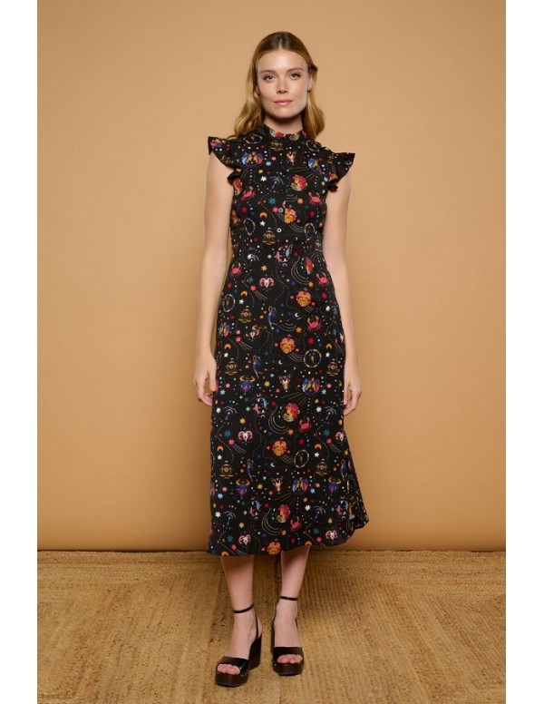 Vestido Midi Manga Corta Volantes y Estampado Místico Zodiac Minueto