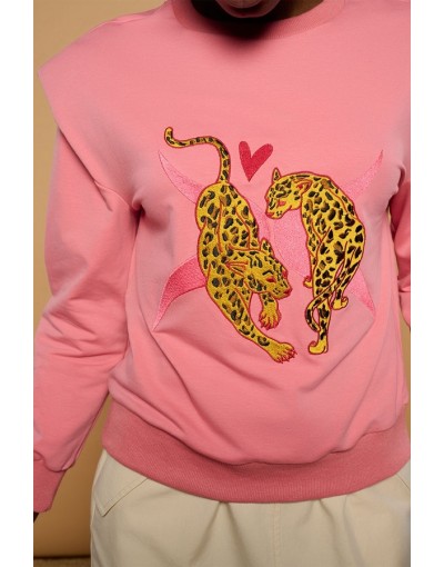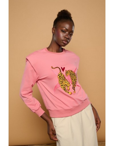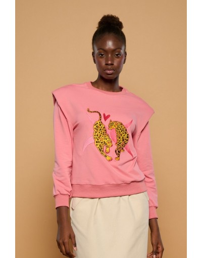 Jersey Rosa con Hombreras y Leopardos Bordados Vanai Minueto