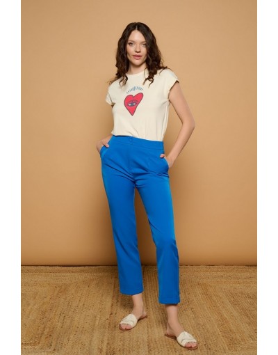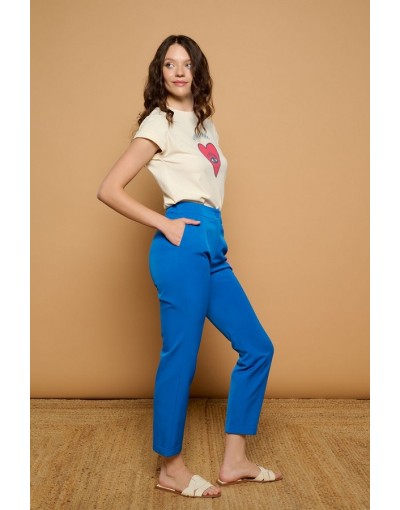 Pantalones de tiro medio. Cierre con botón y cremallera frontal. Bolsillos en lateral.