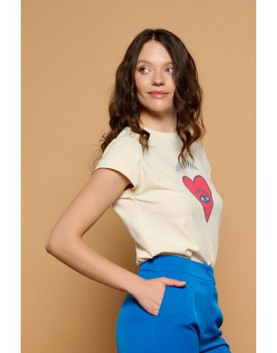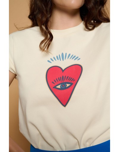 Camiseta de Algodón con Manga corta y Dibujo Corazón Holly Minueto