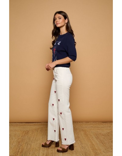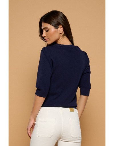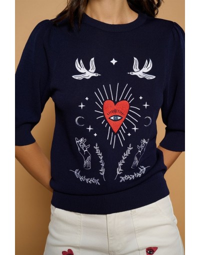 Jersey de Punto Azul Marino con Bordados Misticos y Manga Corta Comté Minueto