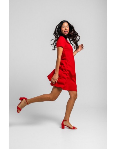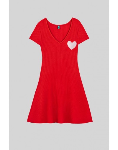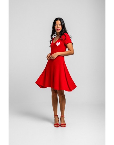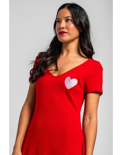 More amor por favor: por que hace falta más amor en el mundo - Vestido Mini Vuelo rojo y corazón: Vestido ceñido en pecho y cintura con vuelo en falda, manga corta y escote en pico.